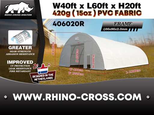 2025 Rhino-Cross-Shelter 406020R - 18x12,2x6,1 m Opslagtent / Opslagshelter
