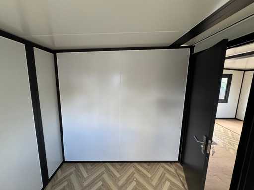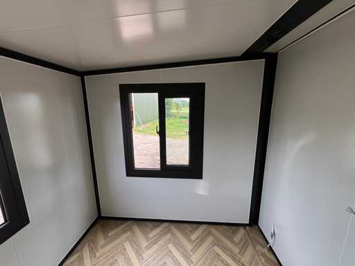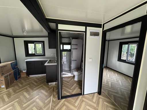 Voorzien van geïsoleerde wanden en dak; 2 slaapkamers; leefruimte met hoekkeuken; badkamer met douche, wc en wastafel; elke ruimte voorzien van verlichting en stopcontacten 230V; meterkast; PVC vloer; aluminium ramen en deuren; afsluitbaar; water, stroom en afvoer kan makkelijk aangesloten worden is voorbereid; ongebruikt en staat transport klaar (transport afmetingen 590x220x248 cm, gewicht 3500 kg)