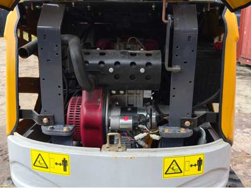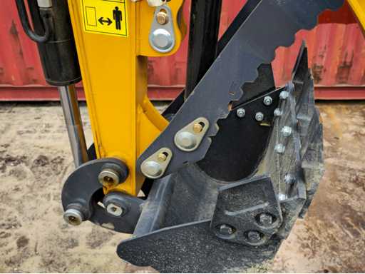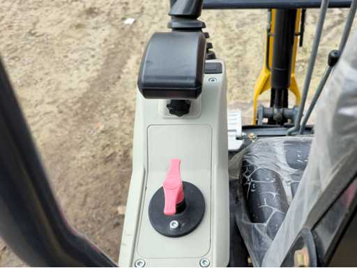 Voorzien van ; Pilot-stijl bedieningselementen voor comfort.; Hydraulische duim, hulp hydrauliek met klep, 15-inch bak, pilot control lock en een grondverzetblad (backfill blade).; Ongebruikt