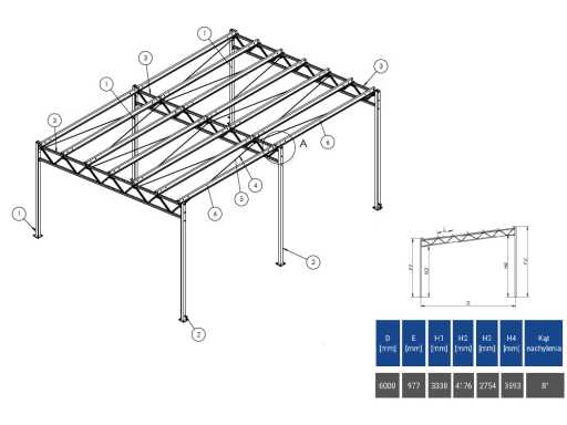 Ongebruikt; poothoogte aan de ene kant is ca 4000mm; poothoogte aan de andere kant ca 3000mm; let op exclusief dakgordingen