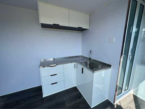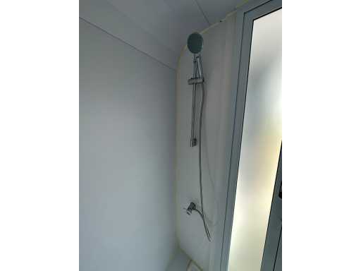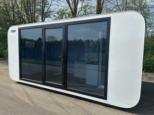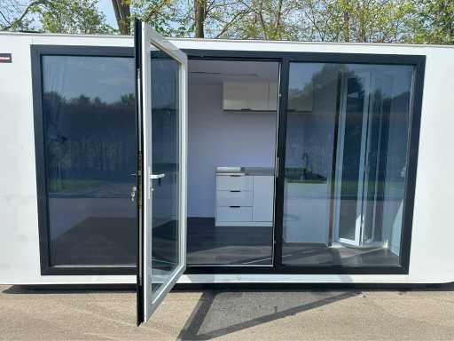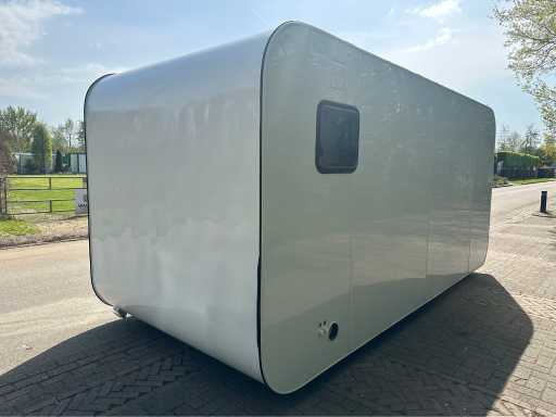 Geïsoleerde wanden en dak; aluminium kozijnen met dubbele zonwerende beglazing; afsluitbaar met sleutel en knopcilinder; uitzetraam; transportafmeting 4950x2300x2450 mm (lxbxh); hijsogen; frame onderzijde; voorzien van lepelgaten en stelpoten; ongebruikt; Intern: sanitaire ruimte met douche; toilet; wastafel met mengkraan en onderkastjes; spiegel met 3 keuze verlichting; ventilator; 220 volt wandcontactdozen met USB aansluiting; led plafondverlichting; 2 stuks uitzetramen met zonwering en horrengaasb; gordijnen; bed box met opbergruimte; aardlekschakelaar; kast -opbergruimte; (excl. accessoires) Externe materialen: Aluminium composiet paneel; wit fluorkoolstof enkelvoudig gecoat aluminium plaat; dubbellaagse lichtgewicht hoge druksterkte Interne materialen; Vlakke knoopplaat van hout-kunststof; ecologische plaat van EO-kwaliteit; ongebruikt