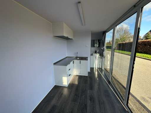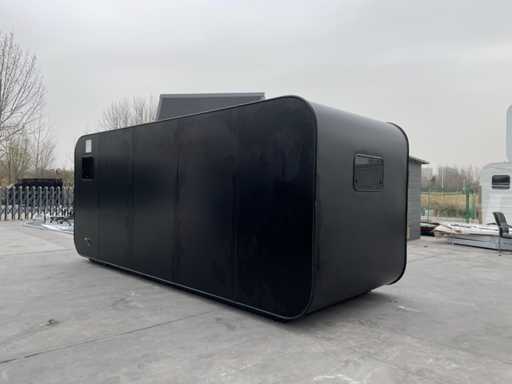 Geïsoleerde wanden en dak; aluminium kozijnen met dubbele zonwerende beglazing; afsluitbaar met sleutel en knopcilinder; uitzetraam; transportafmeting 5950x2300x2550 mm (lxbxh); hijsogen; frame onderzijde; voorzien van lepelgaten en stelpoten; ongebruikt Intern: sanitaire ruimte met douche; toilet; wastafel met mengkraan en onderkastjes en spiegel; ventilator; 220 volt wandcontactdozen met USB aansluiting; led plafondverlichting; 2 stuks uitzetramen met zonwering en horrengaas; gordijnen; hoekkeuken met boven kastjes; aardlekschakelaar kast- opbergruimte; Extern: Aansluitpunt 220 volt; aansluitpunt warm en koud water; rioolaansluiting; Externe materialen: Aluminium composiet paneel; wit fluorkoolstof enkelvoudig gecoat aluminium plaat; dubbellaagse lichtgewicht hoge druksterkte Interne materialen; Vlakke knoopplaat van hout-kunststof; ecologische plaat van EO-kwaliteit; ongebruikt
