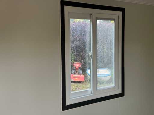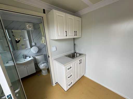 Voorzien van badkamer met toilet, douche en wasbak; keuken; 3 ramen; afwatering dakje; instap trede; ventilatie; makkelijk aansluitbaar op water, riool en stroom; verstelbare poten; ongebruikt