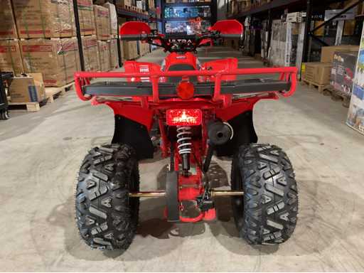 Voorzien van elektrische start; 4 takt; 125 cc; hydraulische schijfremmen; bandenmaat 8” inch; 2 sleutels; ongebruikt in krat (transport afmetingen 135x85x65 cm 118kg)
