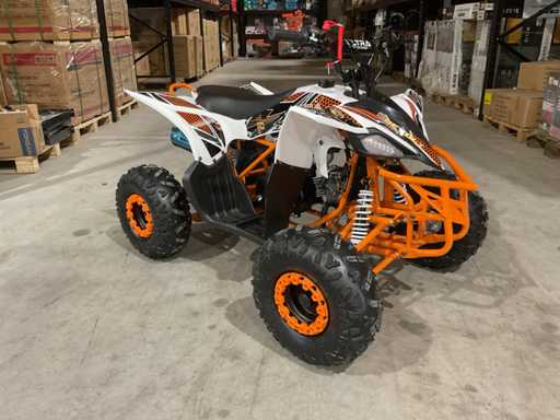 Voorzien van elektrische start; 4 takt; 125 cc; hydraulische schijfremmen; bandenmaat 7” inch; 2 sleutels; ongebruikt in krat (transport afmetingen 130x80x70 cm Gewicht 91kg)