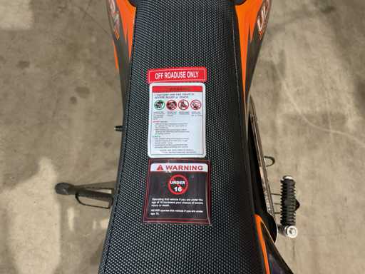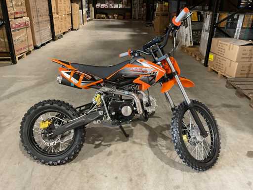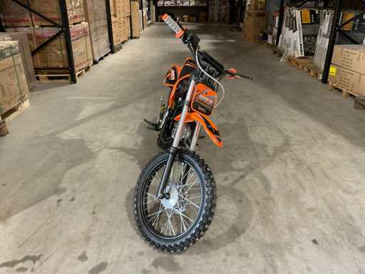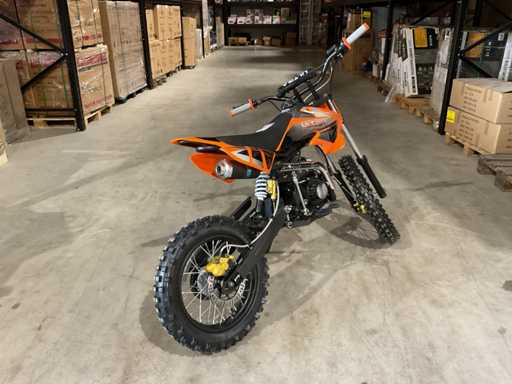 Voorzien van 110cc motor; Manuele koppeling; kickstart; Wiel/velg: V: 90/100-14 (14") A: 70/100-17 (17"); Hydraulische schijfrem; olieschokdemper; Enkele stalen uitlaatpijp; Maximale snelheid: 70 km/u; Ongebruikt in doos (Transport verpakking: 1295 x 375 x 620 mm 75kg)