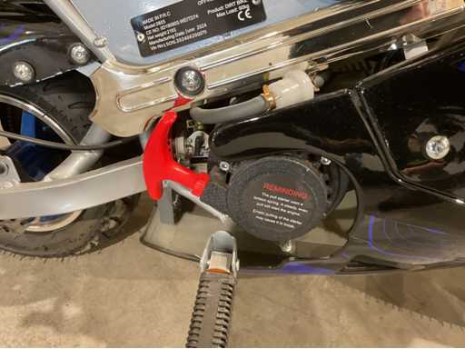 Voorzien van 49cc motor; 2 takt; 3,5 HP; schijfremmen; bandenmaat 6,5” inch; ongebruikt in doos (transport afmetingen 105x35x55 cm 26kg)