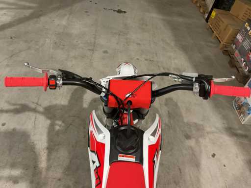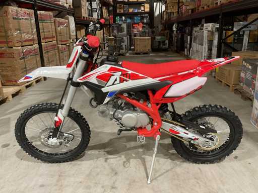 Voorzien van 150 cc motor; 4 takt; kick start; olie gekoeld; bandenmaat voor 19” inch achter 16” inch; hydraulische vering voor en achter; schijfremmen; ongebruikt in doos (transport afmetingen 150x40x75 cm)