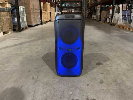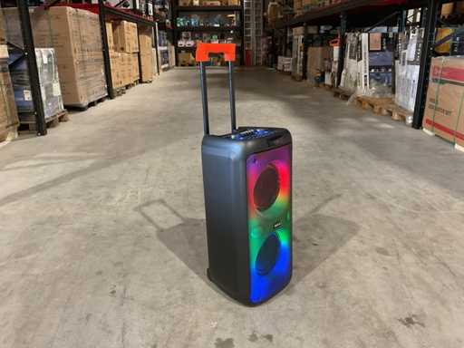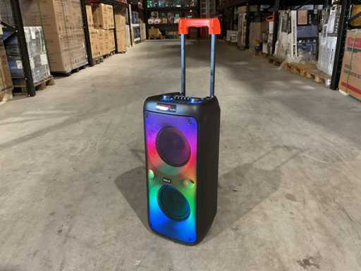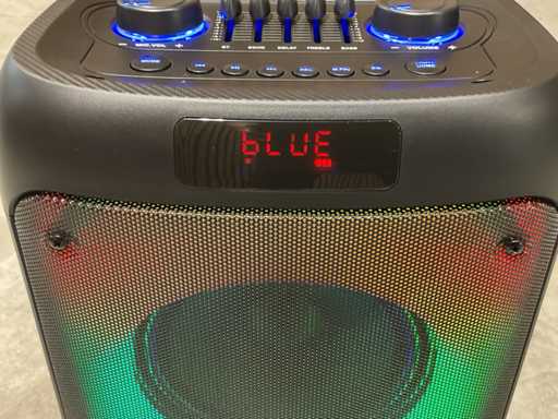 Voorzien van 2x20W speakers; 8inch speaker Horns; Aansluitingen: USB, TF card, BT, AUX; Draadloze microfoon; afstandsbediening; Party verlichting; meerdere microfoon aansluitingen; Ongebruikt in doos.