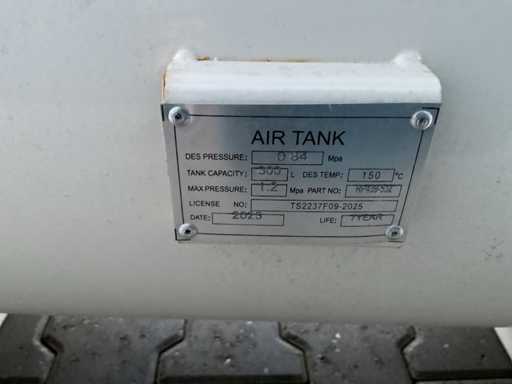 Voorzien van motorvermogen 7,5kw; voeding 380 V, 3-fase, 50Hz; schroefcompressor met inverter; 330 liter tank; werkdruk 8 bar; instelbare druk; digitaal bedieningspaneel; afmetingen 1400 × 800 × 1500 mm (L × B × H); eigen gewicht 300kg; nieuw
