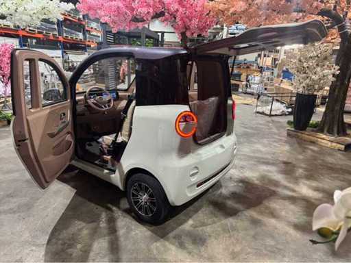 Brommobiel met veel opties; rijk uitgerust met infotainment systeem; navigatie; radio; bluetooth; achteruitrijcamera; full-screen; digitale snelheid aflezen; automaat; handrem; LED verlichting; elektrisch bedienbare ramen; sleutels; hoofdschakelaar; dakraam; een te openen raam in de achterklep; met oplaadkabel 230volt; wordt geleverd met achterbank; geschikt voor 2 personen; ná montage achterbank geschikt voor 4 personen; voertuig is nieuw; met fabrieks KM stand; met bijhorend kenteken en overschrijf papieren; mag bestuurd worden vanaf brommer rijbewijs; 16+; ca 100-120km op een volle accu