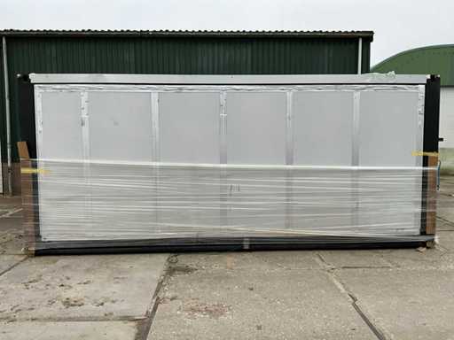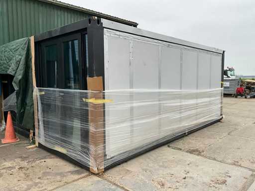 Bovenkastjes keuken worden als bouwpakket meegeleverd; Hou rekening met een ruime laadbak voor transport zodat de dakplaten, het terras en de spanten ook in één vracht meegenomen kunnen worden. Dak, terras en spanten staan los van de 20ft Unit. Transportmaten Unit: L5900mmxB2200mmxH2500mm. Let op: het protaal komt niet overeen met de afbeeldingen, deze is namelijk grijs. Zie laatste afbeelding.