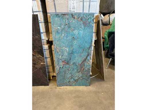 Breng luxe en elegantie in je interieur met de amazonite aqua tegel. Deze prachtige tegel heeft een verfijnde marmerlook met natuurlijke adering, waardoor elke ruimte een unieke en stijlvolle uitstraling krijgt. Dankzij het royale formaat van 60x120 cm oogt de vloer of wand strak en ruimtelijk.