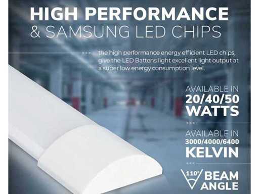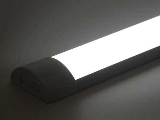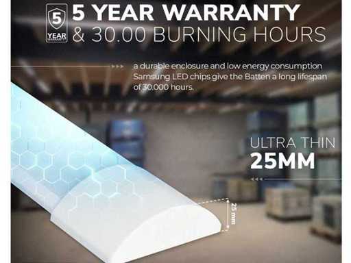 Ruimte besparende led lampen, voorzien van een 36 Watt led lichtbron, geintegreerde led driver. IP40, De armaturen geven neutraal wit licht en zullen in iedere ruimte direct een goede licht uitstraling geven. Lichtbron: inbegrepen, 36 Watt led. Lumen: ca 3600 Lm. Lichtbundelbreedte 120 graden. Lichtkleur: 4000K. Lumen: Afmetingen ca 120 cm x 7.3 x 6.8 cm Conditie: nieuw.