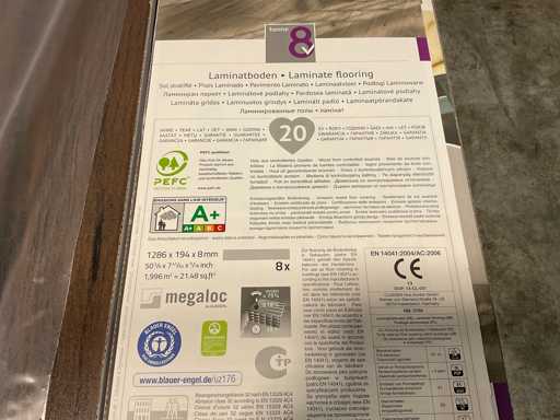Inhoud per pak: 8 planken van 1286 × 194 × 8 mm.