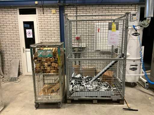Beiden met inhoud waaronder divers hout en snijafval profielen