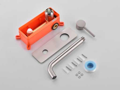 mengkraan met keramisch binnenwerk, materiaal messing, lengte uitloop 19 cm, voorzien van warm/koud mixer, inclusief aansluitmateriaal en installatiebox voor gemakkelijke installatie, LET OP: boven een bod van 125,- euro excl BTW en veilingkosten versturen we dit product gratis binnen de benelux naar u toe per post.