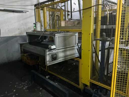 2-delen transportband ca. 6.000 mm lg, 600 mm breed, 1 deel transportband ca. 2.800 mm lg, 1.000 mm breed