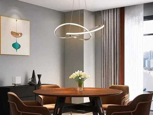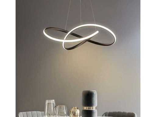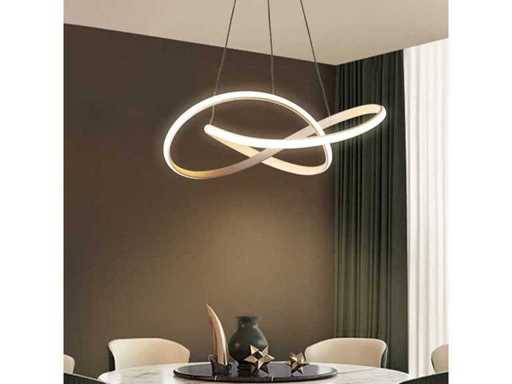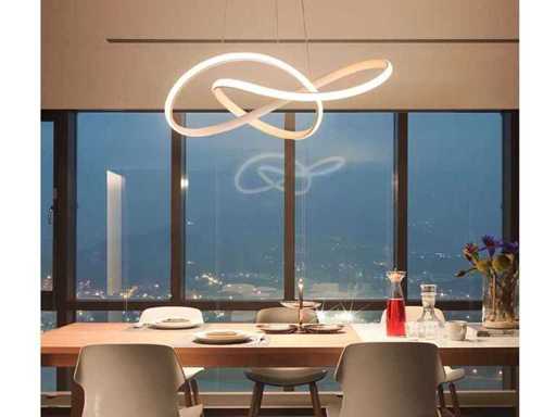 Infinity led design armatuur zilver, pendel design armatuur, geschikt voor gebruik in de woonkamer, in studeerkamers of in slaapkamers, maar ook in werkkamers, spreekkamers of ontvangstruimten. De lamp is voorzien van een onafgebroken opalen led lichtbron welke een uniek licht geeft. Eenvoudige montage, flexibele ophangset voor hoogte verstelling. Warm wit licht. Afmeting ca.: 600 mm x 450 x mm x 1200 mm. Lichtbundel ca 170 graden. Licht sterkte ca 40 Watt: Lichtkleur: Warm wit. Aansluiting: 230 Volt. Kleur: Zilver glans. Dit betreft een nieuw product