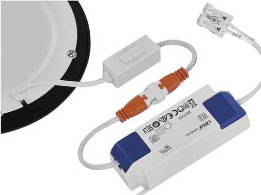 Ultralage led inbouwspots, geschikt voor alle zakelijke, professionele en residentiele ruimten, extra lage inbouwhoogte, gekoppelde led driver en direct fit klem systeem.De montage is nog sneller en eenvoudiger dankzij de geintegreerde led driver en het vernieuwde klem systeem.De armaturen geven warm wit licht en zullen in iedere ruimte direct een goede licht uitstraling geven. De montage is nog sneller en eenvoudiger dankzij de geintegreerde led driver en het vernieuwde klem systeem. Lichtbron: inbegrepen, 7 Watt led. Lumen: ca 560 Lm. Lichtbundelbreedte ca 120 graden. Lichtkleur: warm wit, Afmetingen ca 12 x 2.2 cm, Conditie: nieuw.
