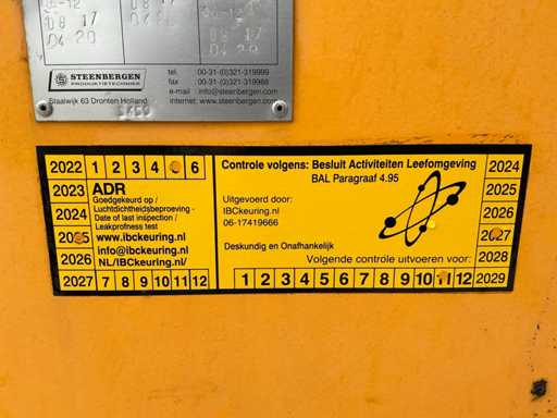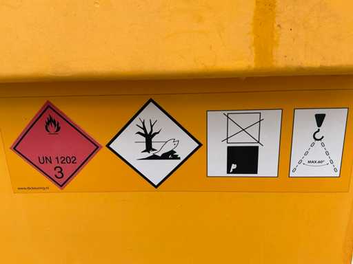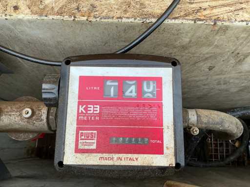 Voorzien van: hijsogen, Piusi 220v brandstofpomp met teller en afgiftepistool, meter en KIWA keuring.