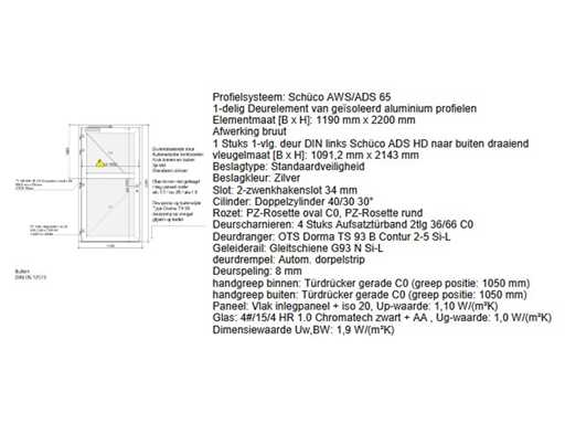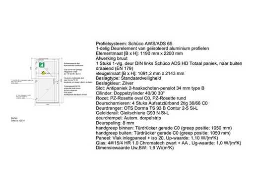 1x enkele draaideur 1190 mm b x 2200 mm h met glas 929x803 mm 4 PSN HR-1+-IN