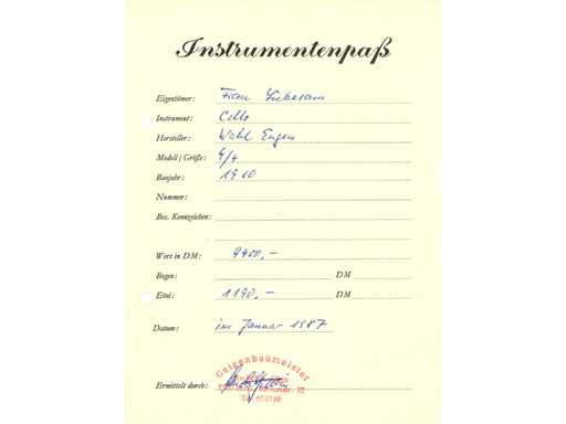 In 2018 werd de cello mondeling getaxeerd door een Belgische vioolbouwer op 9.500€.