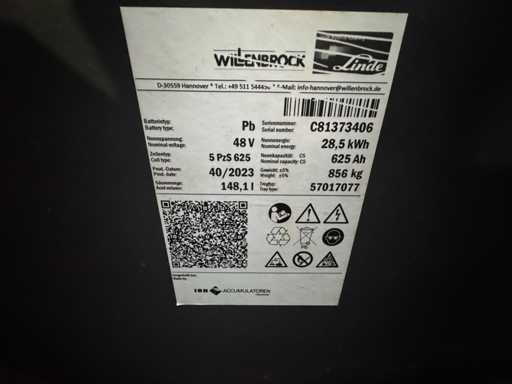 - Accu: Premium Linde IBE 40/2023, 48V 5PzS 625Ah, zeer goede prestaties gemeten met 50,3V
