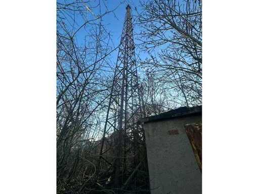 In het dorp gelegen eigendomsperceel van 1.076 m2 met een ca. 40 m hoge antennemast.