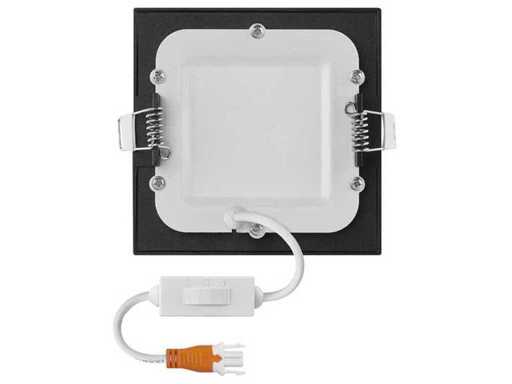 Ultralage led inbouwspots, geschikt voor alle zakelijke, professionele en residentiele ruimten, extra lage inbouwhoogte, gekoppelde led driver en direct fit klem systeem.De montage is nog sneller en eenvoudiger dankzij de geintegreerde led driver en het vernieuwde klem systeem. De montage is nog sneller en eenvoudiger dankzij de geintegreerde led driver en het vernieuwde klem systeem. De armaturen geven natuurlijk wit licht en zullen in iedere ruimte direct een goede licht uitstraling geven.Lichtbron: inbegrepen, 7 Watt led. Lumen: ca 560 Lm. Lichtbundelbreedte ca 120 graden. Lichtkleur: warm wit, Afmetingen ca 10 x 10 x 2.2 cm, Conditie: nieuw