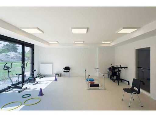 Plafond lampen voorzien van 36 Watt led lichtbron, geschikt voor gebruik in werkkamers, studeerkamers, ontvangstruimten of andere woon of werk plekken. De lampen zijn voorzien van een energie besparende led lichtbron van 36 Watt, geven warm wit licht en nemen weinig ruimte in beslag. Type: plafondlamp, Afmeting: ca 21,1X21,1X5,05 CM., Aansluiting: 230V, Ledlichtbron ja. Stroomsterkte 36 Watt, Lichtkleur: 3000K, Lumen: 4600 Lm, model: LED-KLIO-Q21C / 8031414875696 conditie: Nieuw. Lotwaarde: € 520,-