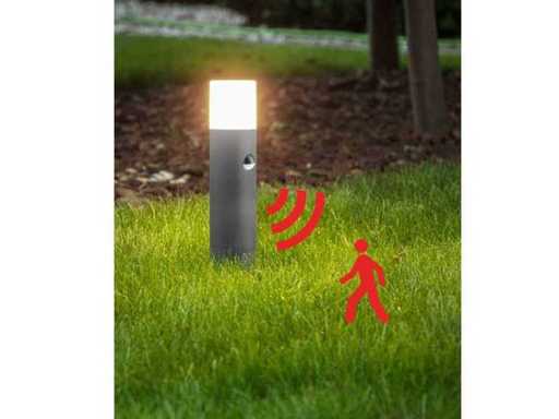 De Cortona lampen serie zijn gemaakt van hoogwaardig aluminium afgewerkt in grafiet poedercoat. Met een hoogte van 40 cm is hij perfect voor installatie langs paden, patio's, terrassen, tuinen en veranda's. Dankzij de IP44-bescherming is de lamp perfect bestand tegen regen, vochtigheid, stof en vuil. De lamp is voorzien van een bewegings sensor en kan daarmee voor een energiebesparing zorgen omdat hij zowel 100% aan kan zijn of alleen aan springen wanneer er beweging wordt gezien. Afmetingen: Ø80x400mm, voet Ø120mm, Kleur: Grafiet Zwart, Afwerking mat. Spatwaterdicht: Ja, IP44, Type: vloer lamp / grond armatuur Bijzonderheden: Dit product is volledig nieuw