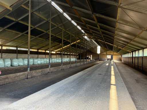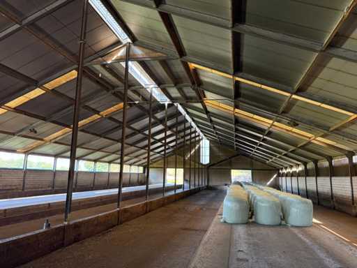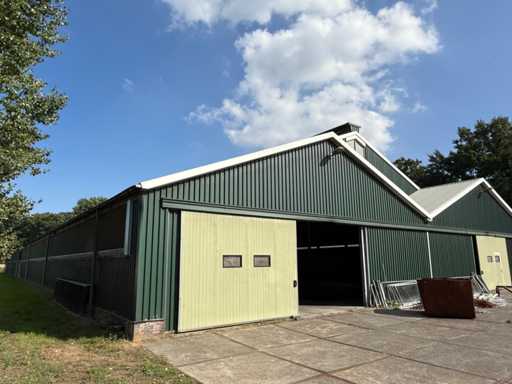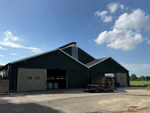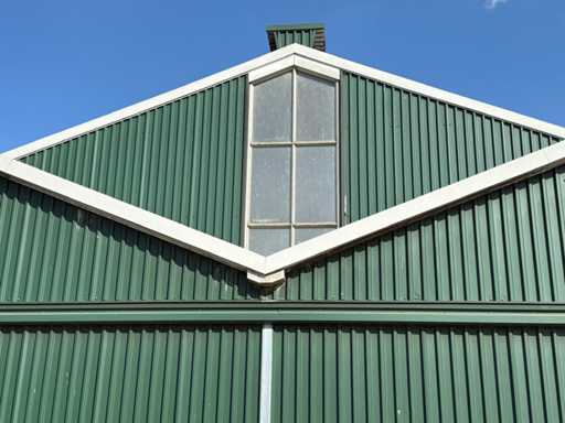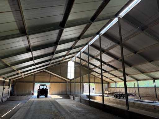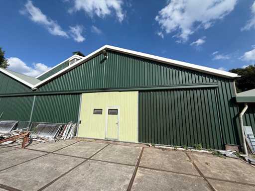 circa 80x30 mtr, uit bouwjaar 2002, bestaande uit dakplaten, spanten/staalcontructie , gordingen, dakplaten 50/80, Let op! muren worden voor de demontage verwijderd, Bezichtiging en demontage (november 2025) + laden op afspraak. Voor meer info zie bijgevoegd telefoonnummer (+31653491582)