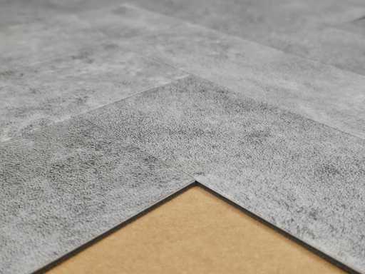 Kwaliteits pvc vloer, dikte 2,5 mm, Toplaag 0,55 mm, Water bestendig, Dryback, te verlijmen, visgraat, vorstbestendig, ideaal voor vloerverwarming, kras en slijtvast, anti slip, 43 pakken a 1,96 m2