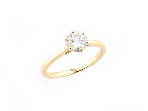9 KT geelgouden ring met 1,0 cts laboratoriumgekweekte diamant