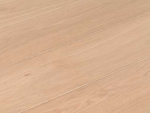 Gemakkelijk te leggen wegens mes en groefsysteem, geschikt voor alle soorten vloer en koelverwarmingen, kwaliteits parketvloer, vloer is van hoogwaardig Europees eiken hout, kant en klaar behandeld, dikte 14 mm, toplaag 3 mm, 70 pakken a 1,32 m2