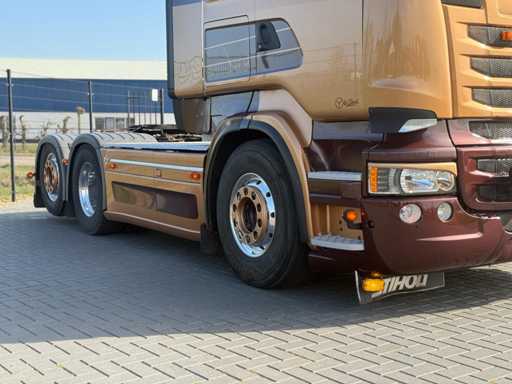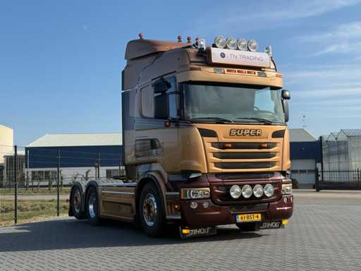 Scania - 2013 - R730 - 61-BST-4 - V8, SHOWTRUCK VOLLUCHT, RETARDER, HYDRAULIEK, BOOGIE, ALU WIELEN, LEER
