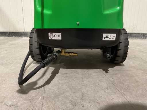 Voorzien van werkdruk 150 bar; watercapaciteit 900l/uur (≈ 15 l/min); maximale watertemperatuur: 90 °C; Voeding 230 V / 50 Hz (220V aansluiting); motorvermogen: ca 3,2 kW; warmwater door dieselbrander; reinigingsmiddeltank; nieuw