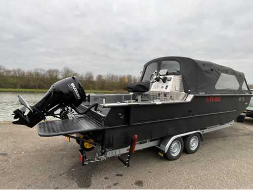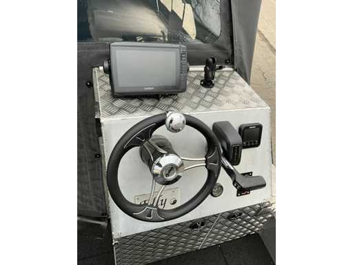 Arynboats 700 High/Low visboot met zeer veel opties: Waeco koelkast, gasoven, 2 pits gaskookplaat,gasoven, verwarming, vaste drinkwatertank,vaste toilet, spoelbak met drinkwater aansluiting, diverse 12v en usb oplaadpunten, accubank met lithium accu’s 500ah, laadinstallatie en omvormer, Garmin echomap fishfinder met GT56 transducer, Minn Kota Ulterra automatische boegmotor. Pega V liner dubbelastrailer met Novawinch lier. Suzuki DF90ATL buitenboordmotor met zeer weinig draaiuren. Onderhoudshistorie bekend en werkt naar behoren.