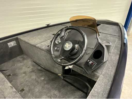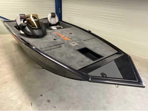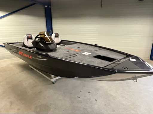 Nieuwe volledig gelaste Kimple Sniper 498 Bassboat met waterdichte opbergvakken, marine camper afwerking, inbouwtank 60 liter, Livewell met automatische vul en circulatiepomp, hengelbak in midden van werpdek, led navigatie verlichting, stuursysteem en electra voorbereiding, stuurconsole met raam, bilgepomp, incl CE papieren
