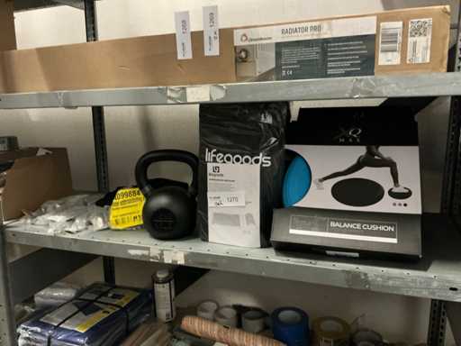 Bestaande uit: gewicht, 2x acupressuurmat en kussen, 5x balanskussen, thermo shirt en broek en haken.