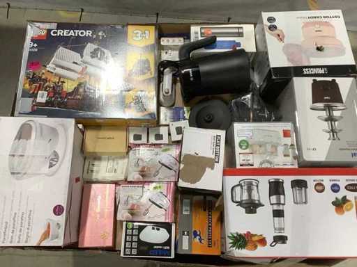 Dit betreft een partij retourgoederen van een grote online retailer. De goederen bestaan uit diverse productcategorieën. Ongecontroleerd: werking onbekend (mix van
