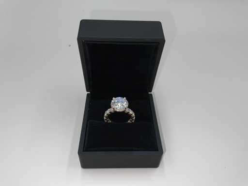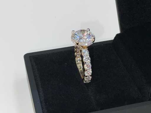 Hele dikke ring met opvallend grote hoofdsteen en 12 middel grote diamanten op de ring en nog eens vele kleine diamanten in de armen van de diamanthouder. Uniek en maar 1 van gemaakt. Eigen ontwerp en ongedragen. Speciaal voor de kerstmisspecial en enkel maar eenmaal te koop.