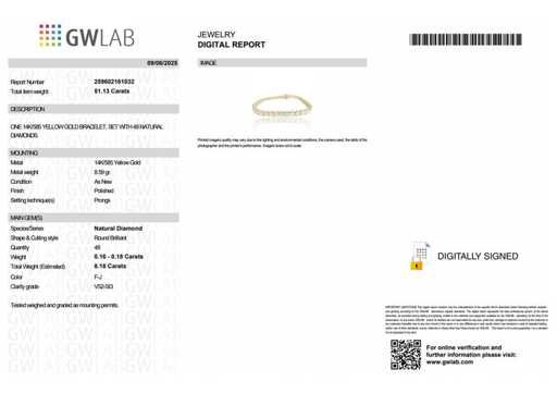 14 Krt. geelgouden armband met 8,18 crt. diamanten naturel