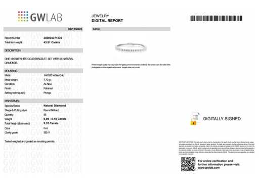14 Karaat witgouden armband met 5,32 crt. natuurlijke diamant