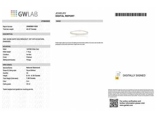 14 Karaat witgouden armband met 7,50 crt. natuurlijke diamant