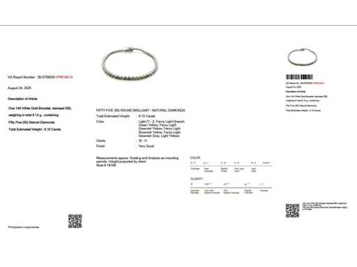 14 Karaat witgouden armband met 6,15 crt. natuurlijke diamant