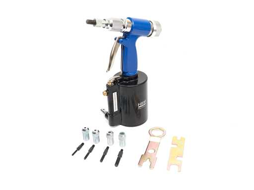 Deze pneumatische blindklinkmoertang is geschikt voor blindklinkmoeren van M4, M5, M6, M8 en M10. Met een slaglengte van 10 mm is het een echte allrounder voor in de werkplaats. Compleet geleverd met 5 neusstukken en plaatsingssleutels. Geschikt voor gebruik in auto's, aanhangwagens , meubelreparatie of zelfs bootbouw. Ideaal gereedschap wanneer de achterzijde van het materiaal niet bereikbaar is. Lichtgewicht, goed uitgelanceerd en handzaam in gebruik.