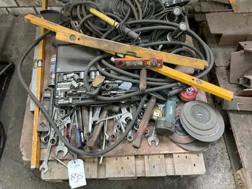 Bestaande uit onder andere: 5 haakse slijpers, schijven, handgereedschap, waterpassen