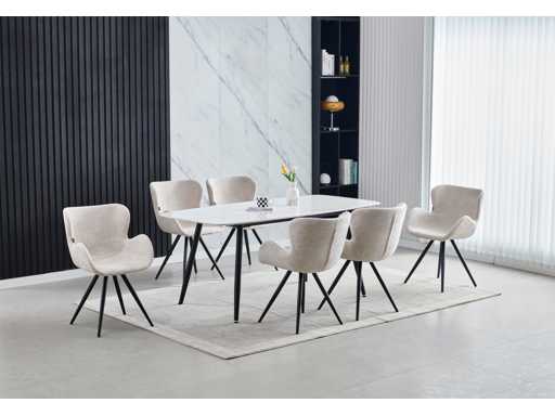 Colenis - Anabella Eetkamerstoel - Set van 4 - Beige - Chenille Stof - Industrieel - Met armleuning